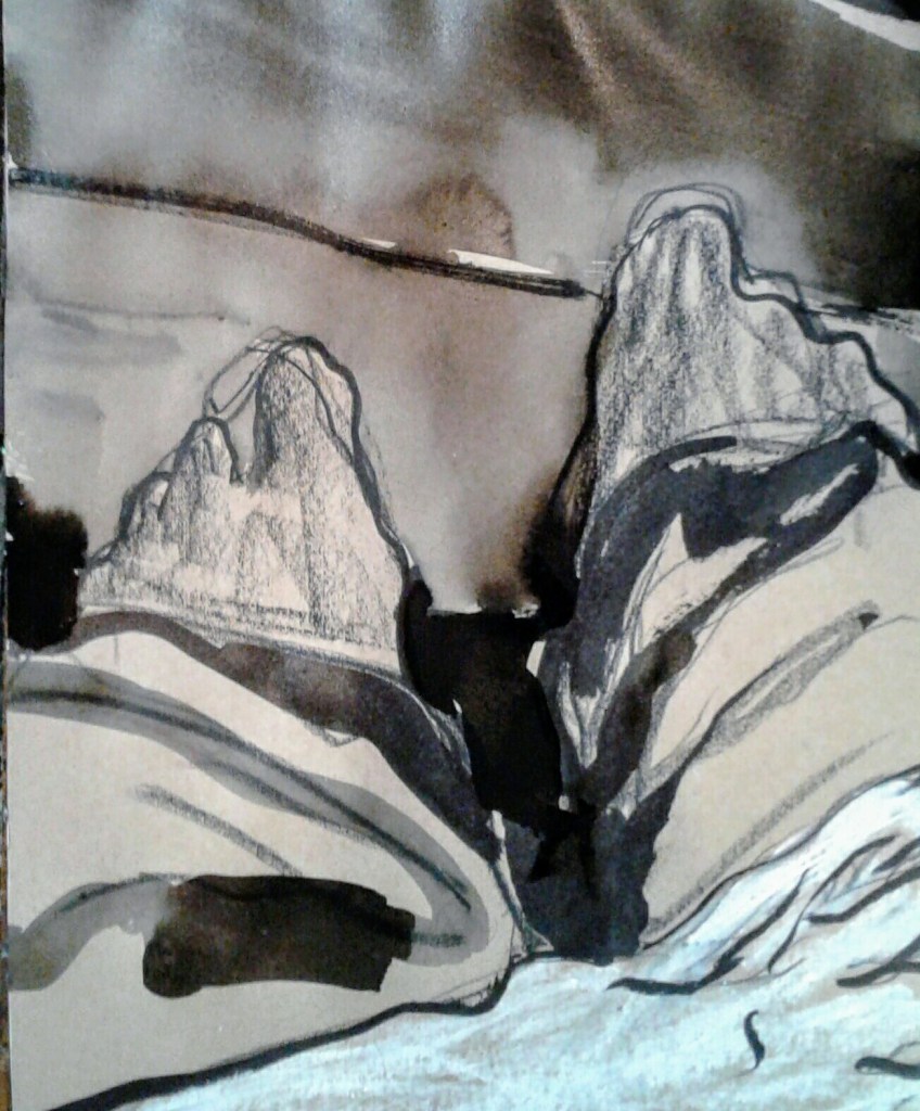 Staring at my feet.