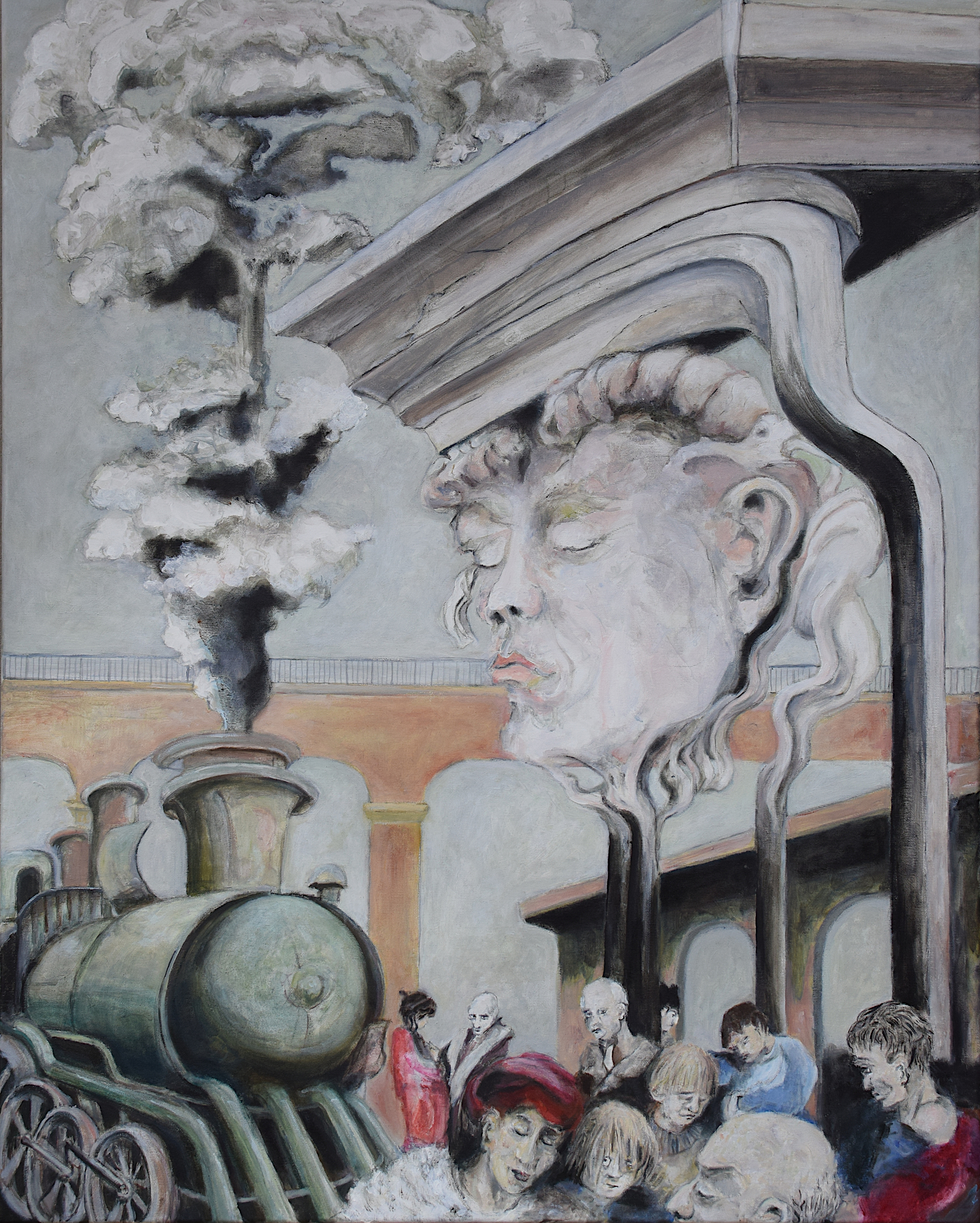 This work is finished. "Geschichte wird gemacht" means history is made. I always had a strong affection towards railway stations. I lived nearby a station several times and do like this special atmosphere. Everybody is going somewhere or coming from somewhere. It is an image of past and future simultaneously in one place.