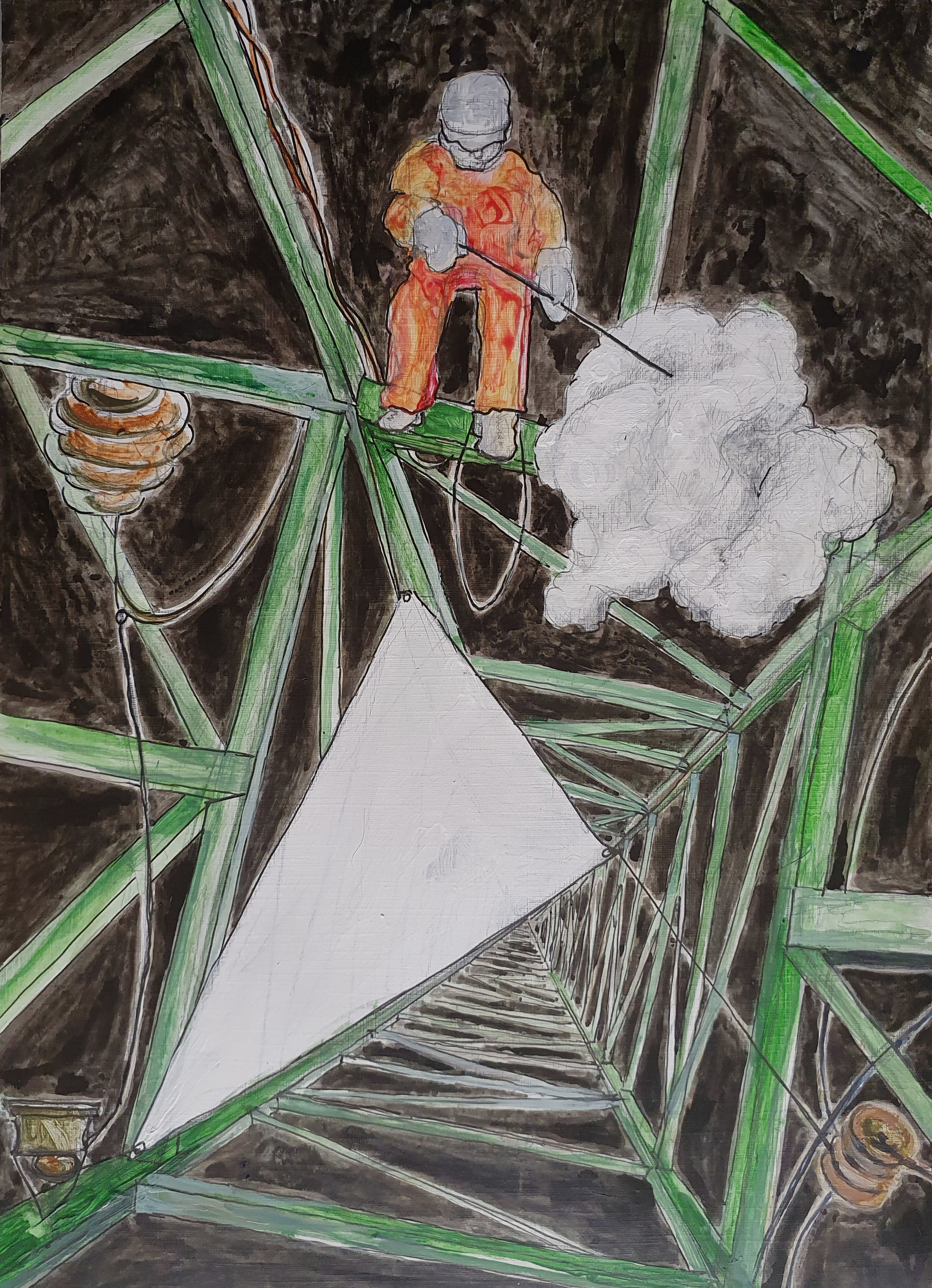 A few month later strange system faults in the electric grid were accumulating. Technicinas and scientists were helpless. The laws of nature sometimes seemed to have changed. In some cases high voltage pylons needed to be repaired. Small clouds that did not change their positions for several months. This did cause dangerous flashovers destroying the isolators. As a result emergency shutdowns were leading to blackouts.