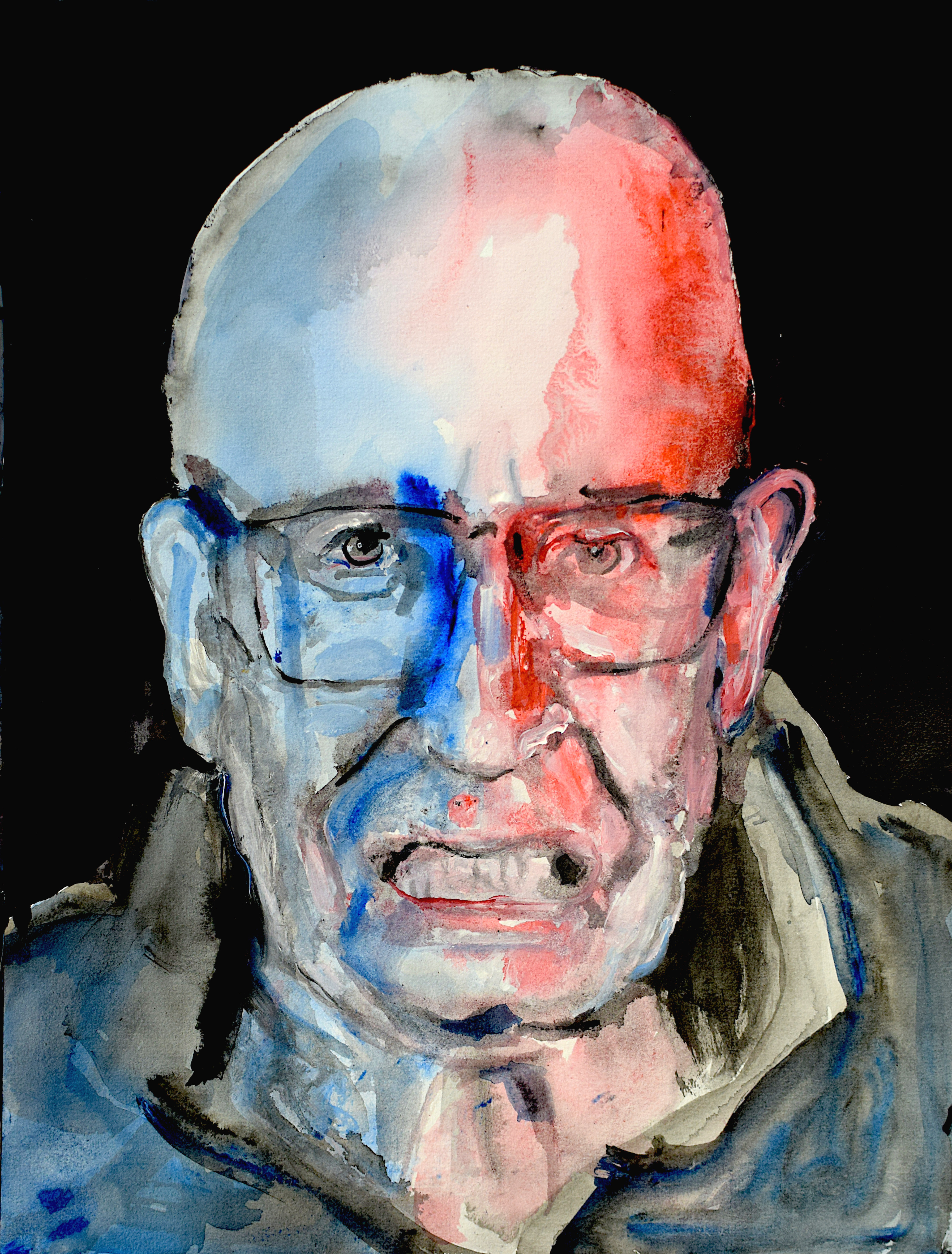 This is the final piece of a series of self-portraits, the last of one hundred. Sometimes my counterpart did appear as an friend somtimes a foe. But nothing really extraordinary happened, no special insight or a mystery. So I could go on further and further. But its time to put it to an end now.