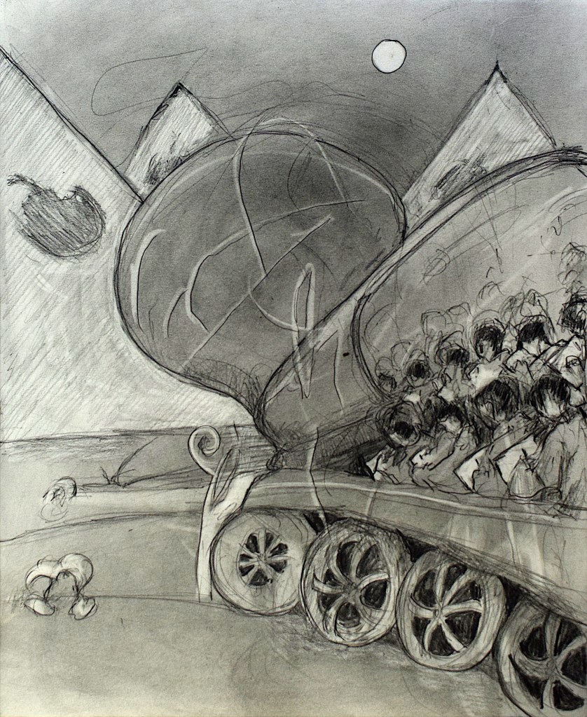 That’s a powerful drawing. Gripping. Strange imagination you have, thank goodness!