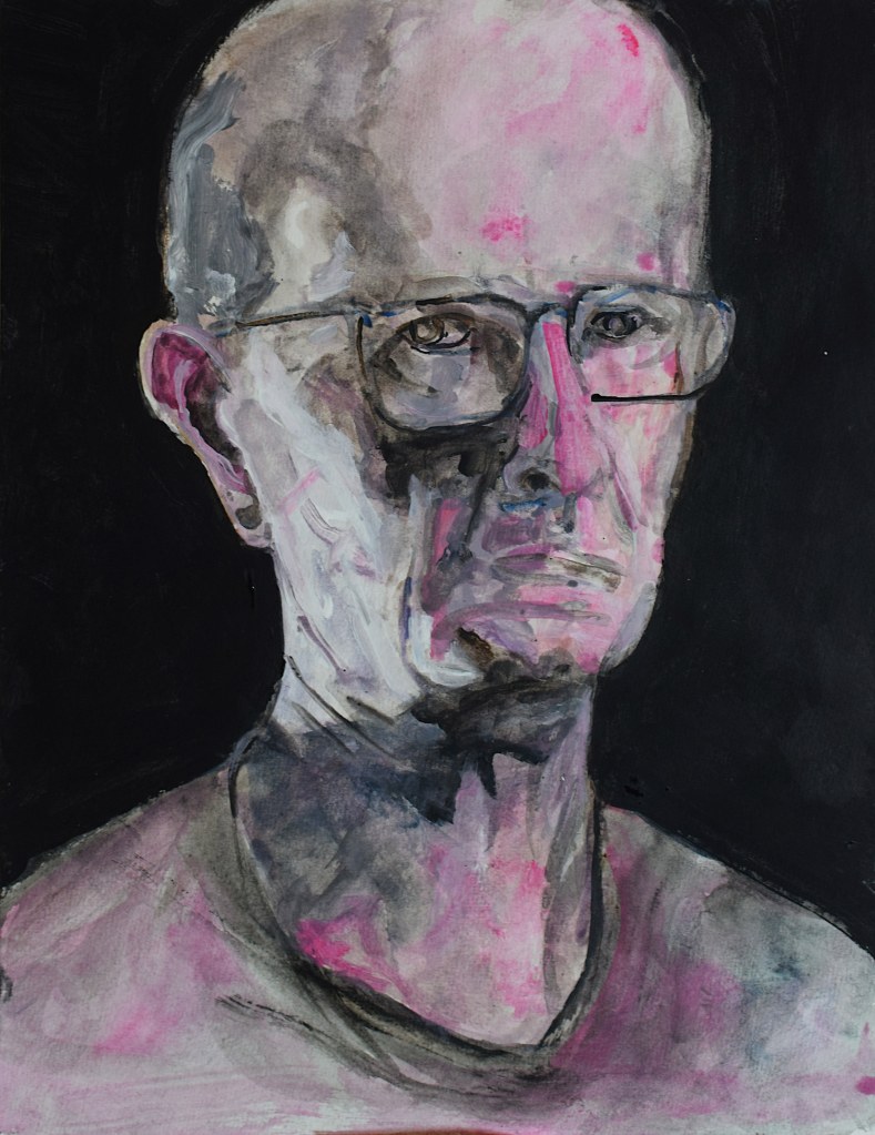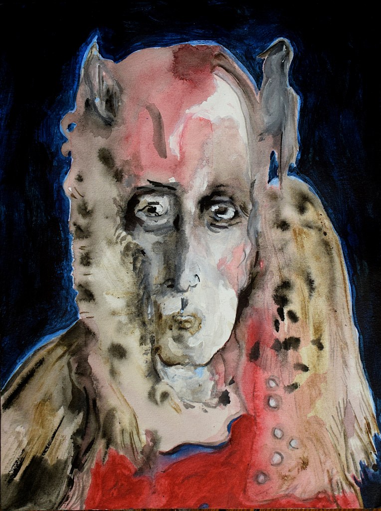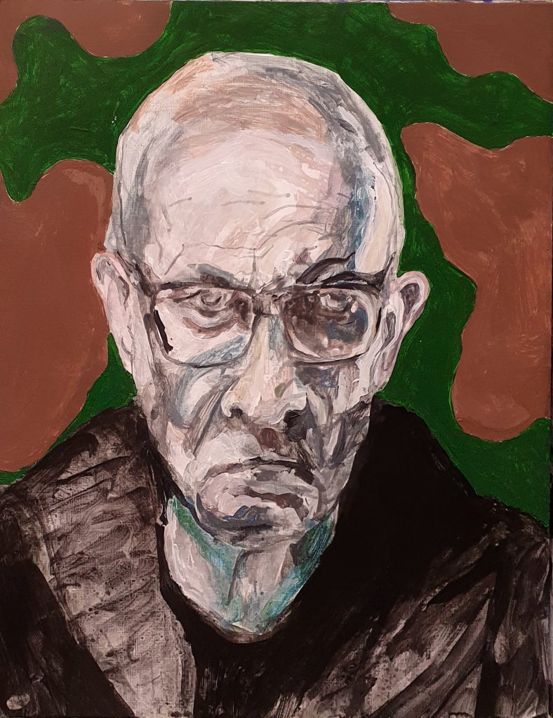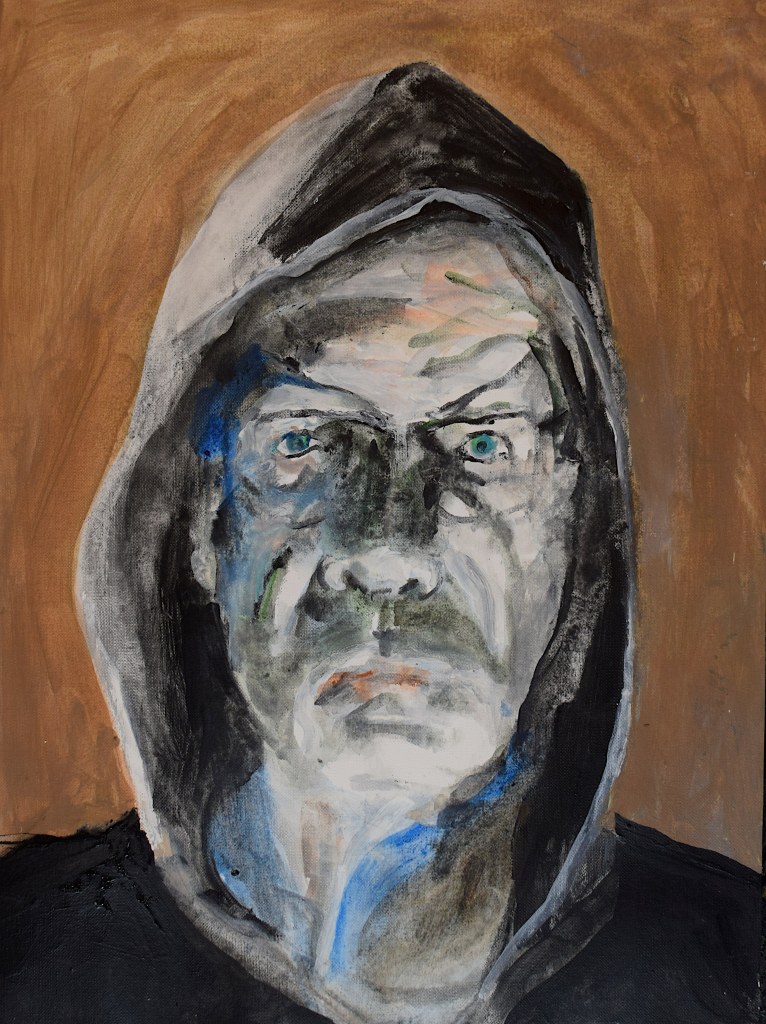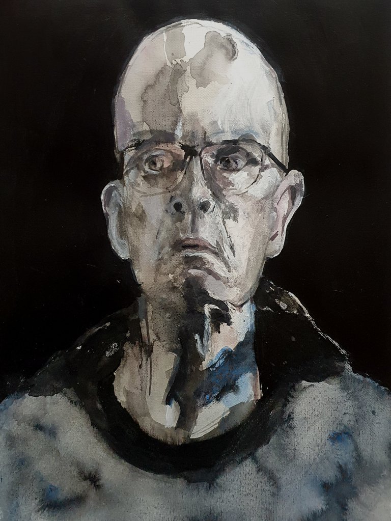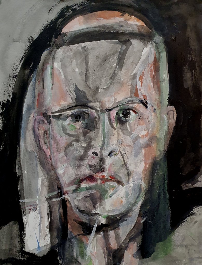 I did start with a goal of 49 works, but could not stop. In the end there were 100 pieces. Sometimes my counterpart did appear as an friend somtimes a foe. But nothing really extraordinary happened, no special insight or a mystery. So I could have been going on further and further but put an end to it when a reached 100 works. I decided to name the entire series “Mensch” in the end do underline the most important fact of a human being, existence.