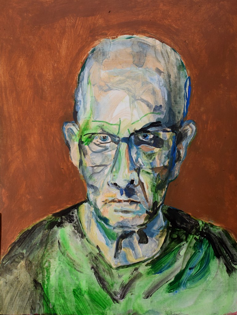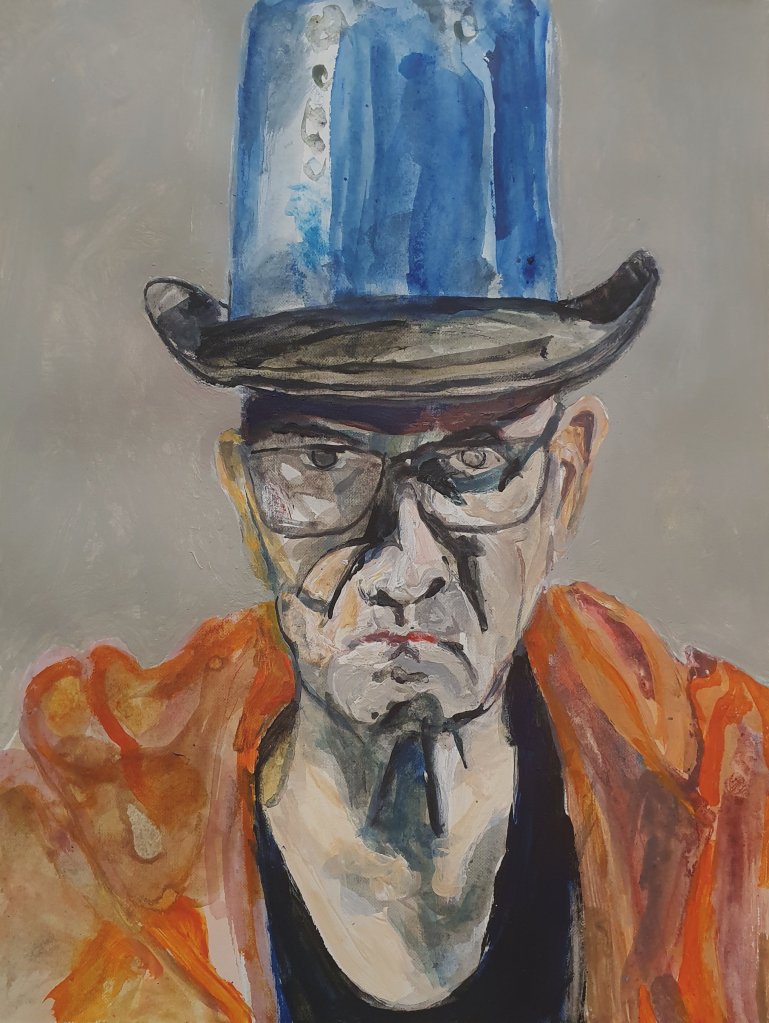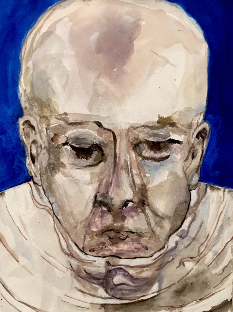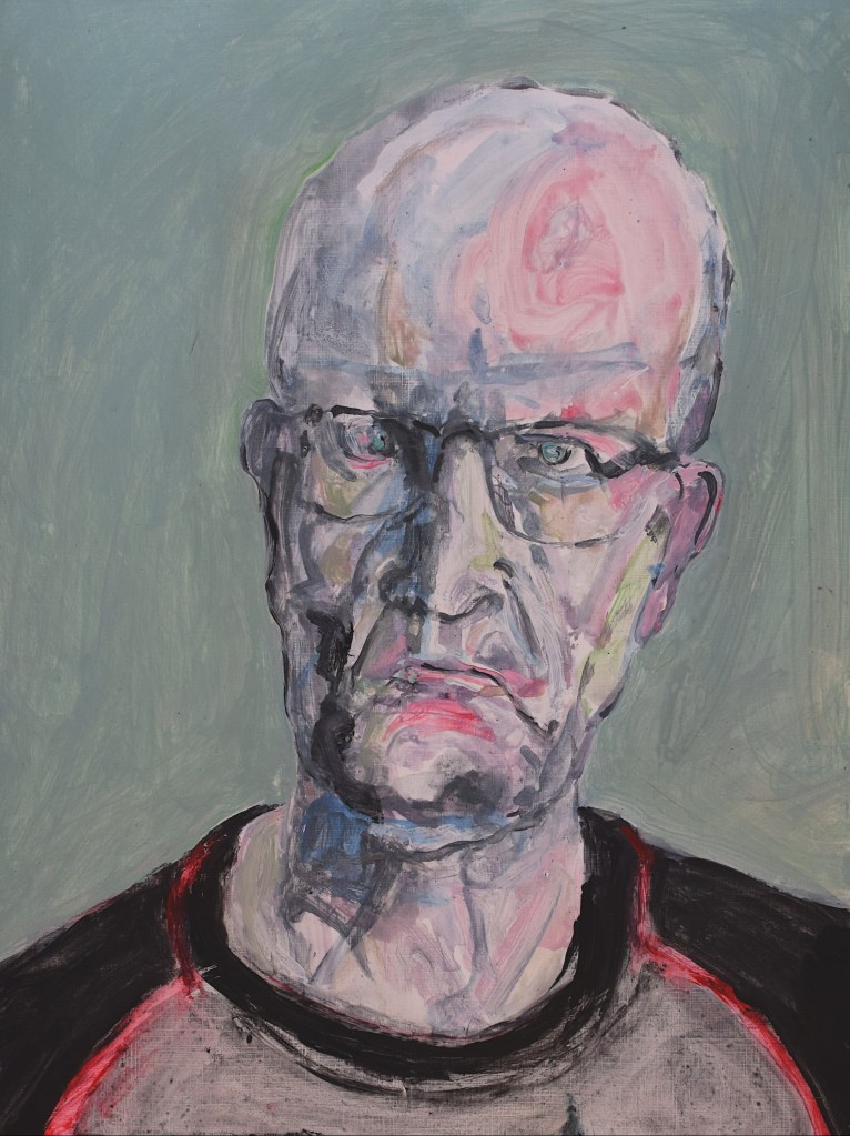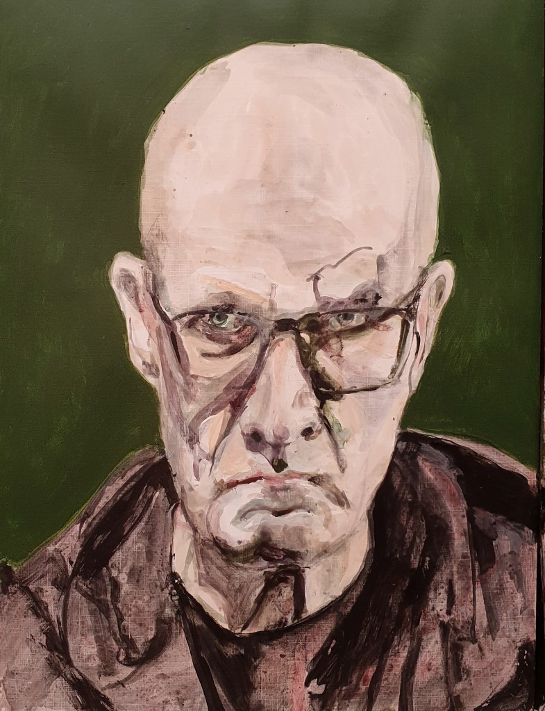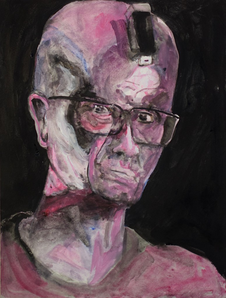 I did start with a goal of 49 works, but could not stop. In the end there were 100 pieces. Sometimes my counterpart did appear as an friend somtimes a foe. But nothing really extraordinary happened, no special insight or a mystery. So I could have been going on further and further but put an end to it when a reached 100 works. I decided to name the entire series “Mensch” in the end do underline the most important fact of a human being, existence.